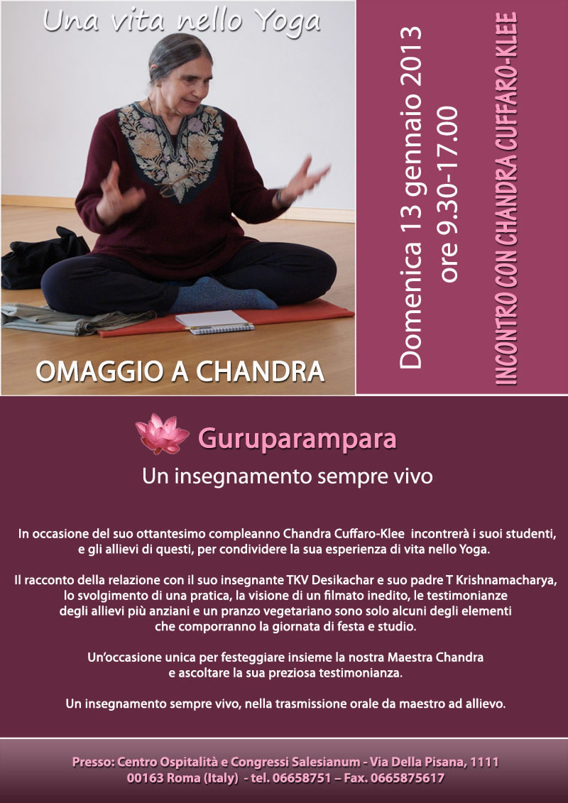 L'incontro verterà sull'insegnamento e l'applicazione dello Yoga di TKV Desikachar, figlio e allievo del Maestro T Krishnamacharya, depositario e massimo rappresentante mondiale della tradizione ereditata dal padre, uno tra i più grandi maestri dell'era moderna.